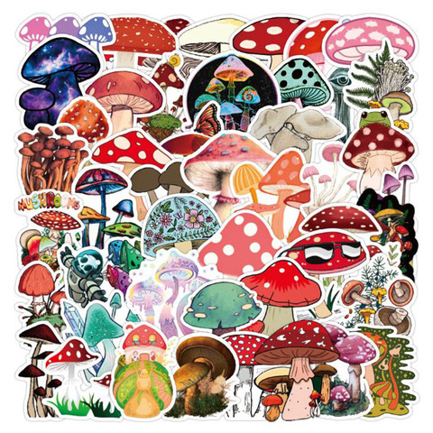 50Pcs 귀여운 식물 버섯 스티커 노트북 스케이트 보드 헬멧 수하물 벽 DIY 선물 인쇄 데칼 Latop 창 유리