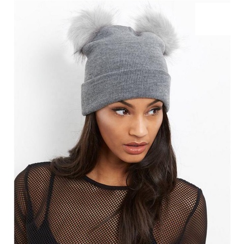 Vrouwen Winter Warm Dubbele Pom Haak Gebreide Muts Bobble Beanie Ski Wol Zachte Hoed Toevallige