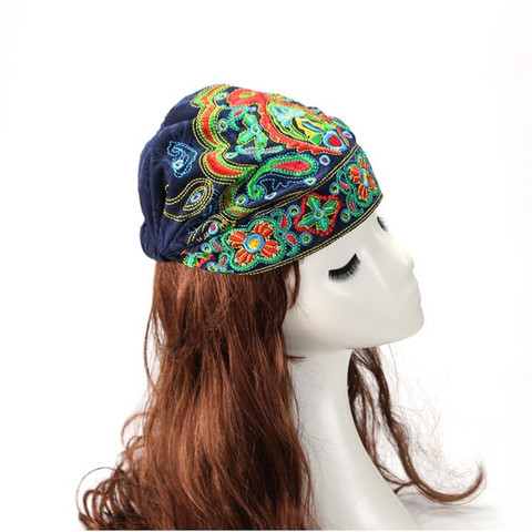 Lady Vrouwen Zachte Katoen Etnische Stijl Tulband Hoed Hoofd Wrap Sjaal Beanie Geborduurde Bloem Bloemen Print