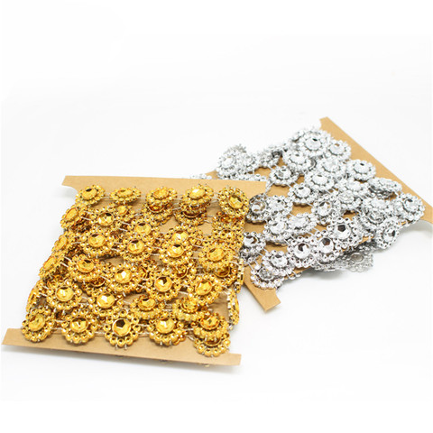 2 Yards Sunflowers Rhinestone Chain Ribbon Trim Sewing DIY Dress Decor Applique Gold Set