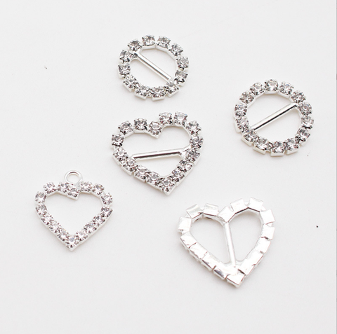 Gümüş kalp taklidi Diamante şerit toka tokaları kaymak DIY takı giyim düğün elbisesi aksesuarları